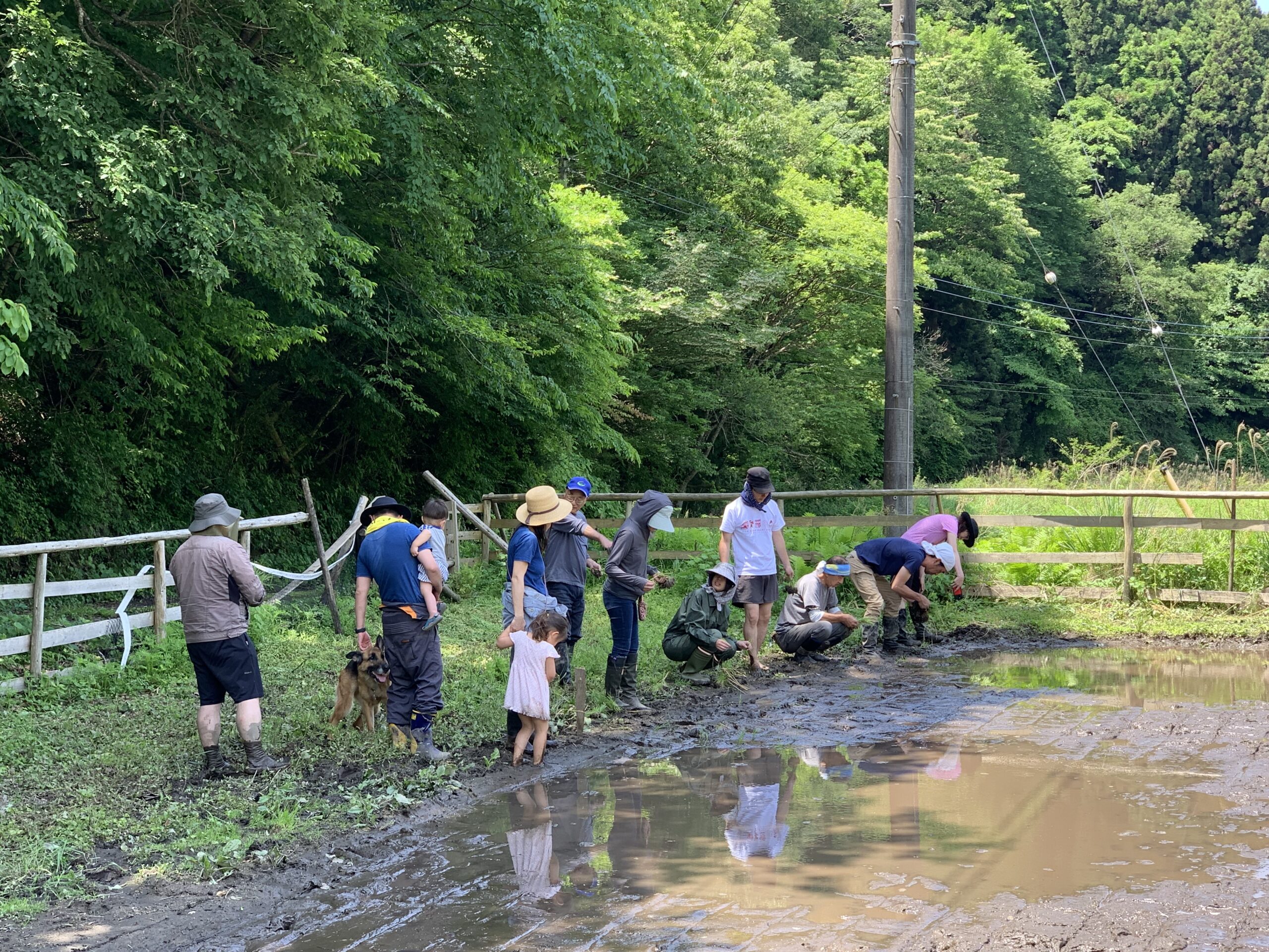 まどかでは、バランスよく道具や機械を用いつつ、なるべく自然に帰る材料を使用したり自然や動物と力を合わせることで、楽しく無理なく継続できる、循環する環境との共生を実践しながら研究することを目的とし、機械や車が入りづらい場所にも入れる馬との作業で、できることが増えるのではないか、そんな考えから馬との活動にも取り組み、馬耕での田起こしから有機栽培での古代米栽培を実施。